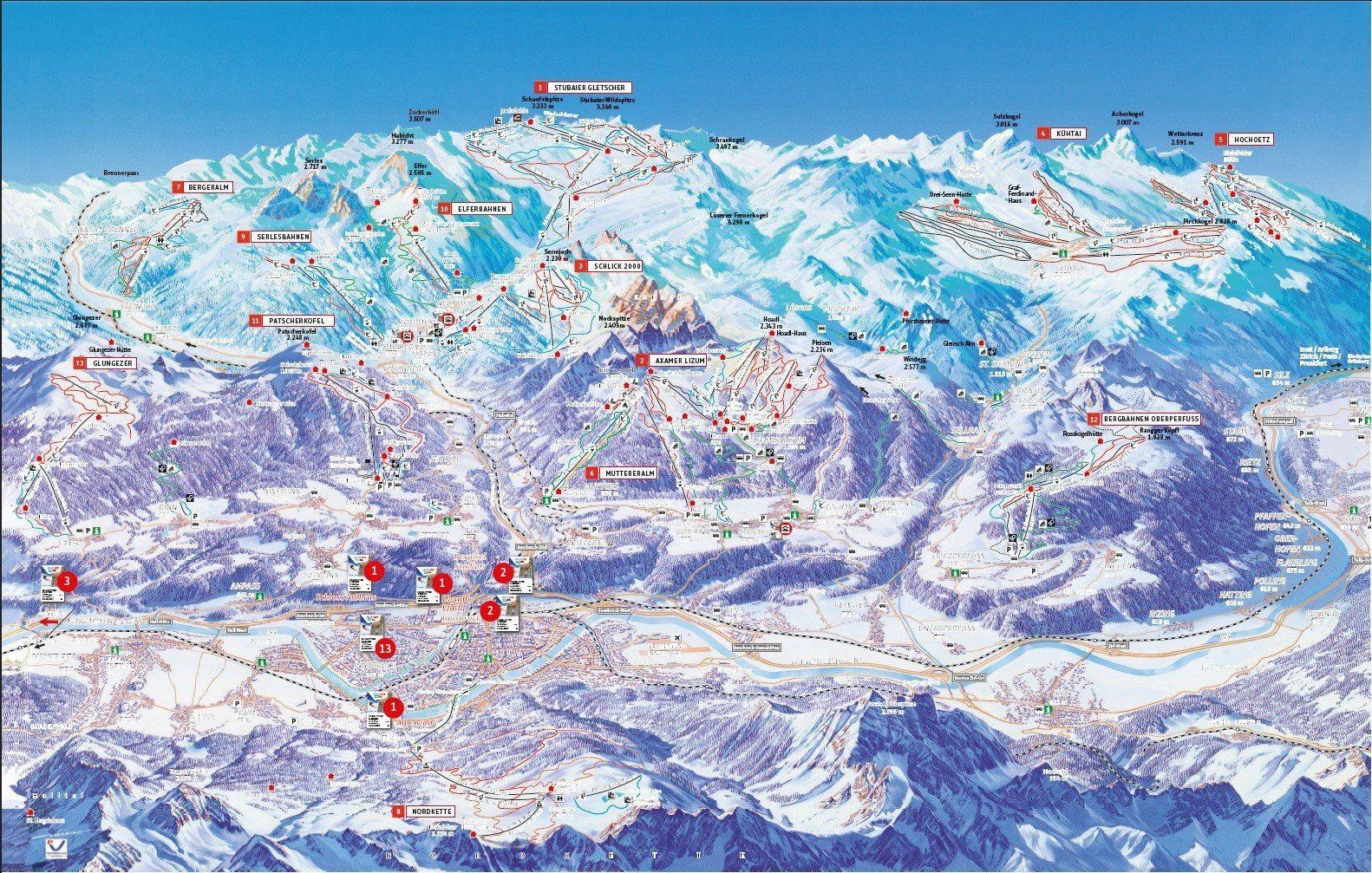 Die 10 km lange Skiroute „Wilde Grub’n“ am Stubaier Gletscher ist die längste Abfahrt der Region. Mit ihrem mittleren Schwierigkeitsgrad eignet sie sich vor allem für fortgeschrittene Wintersportler. Wer noch mehr Herausforderung sucht, kann sich an der schwarzen Olympiaabfahrt am Patscherkofel oder an der 1 km langen Skiroute „Karrinne“ im Nordpark versuchen.