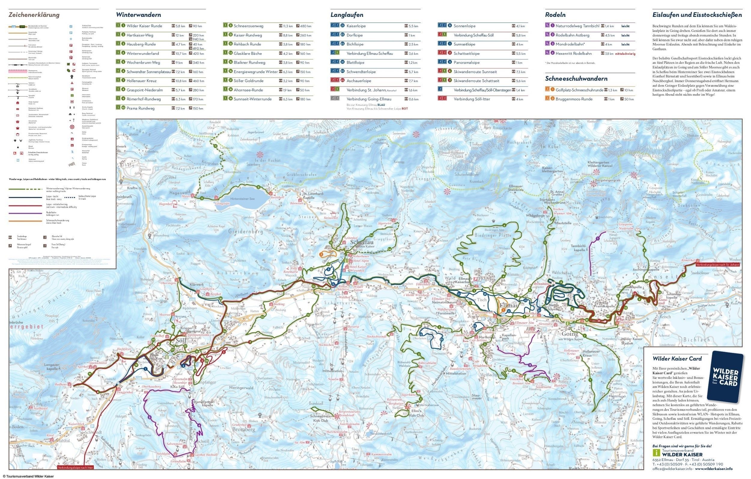 Das weit verzweigte Loipennetz deckt alle Schwierigkeitsgrade ab und verfügt über einen Anschluss an die Loipen in St. Johann und Kitzbühel. Sportlich ambitionierte Läufer nutzen z.B. die anspruchsvolle Loipe in Angerberg oder die rund 8,4 km lange Strecke in Kelchsau mit ca. 200 Höhenmetern. Genießer finden auf Strecken wie der 2,2 km langen Höhenloipe in Hochbrixen oder der aussichtsreichen Sunnseitloipe in Söll ideale Bedingungen.