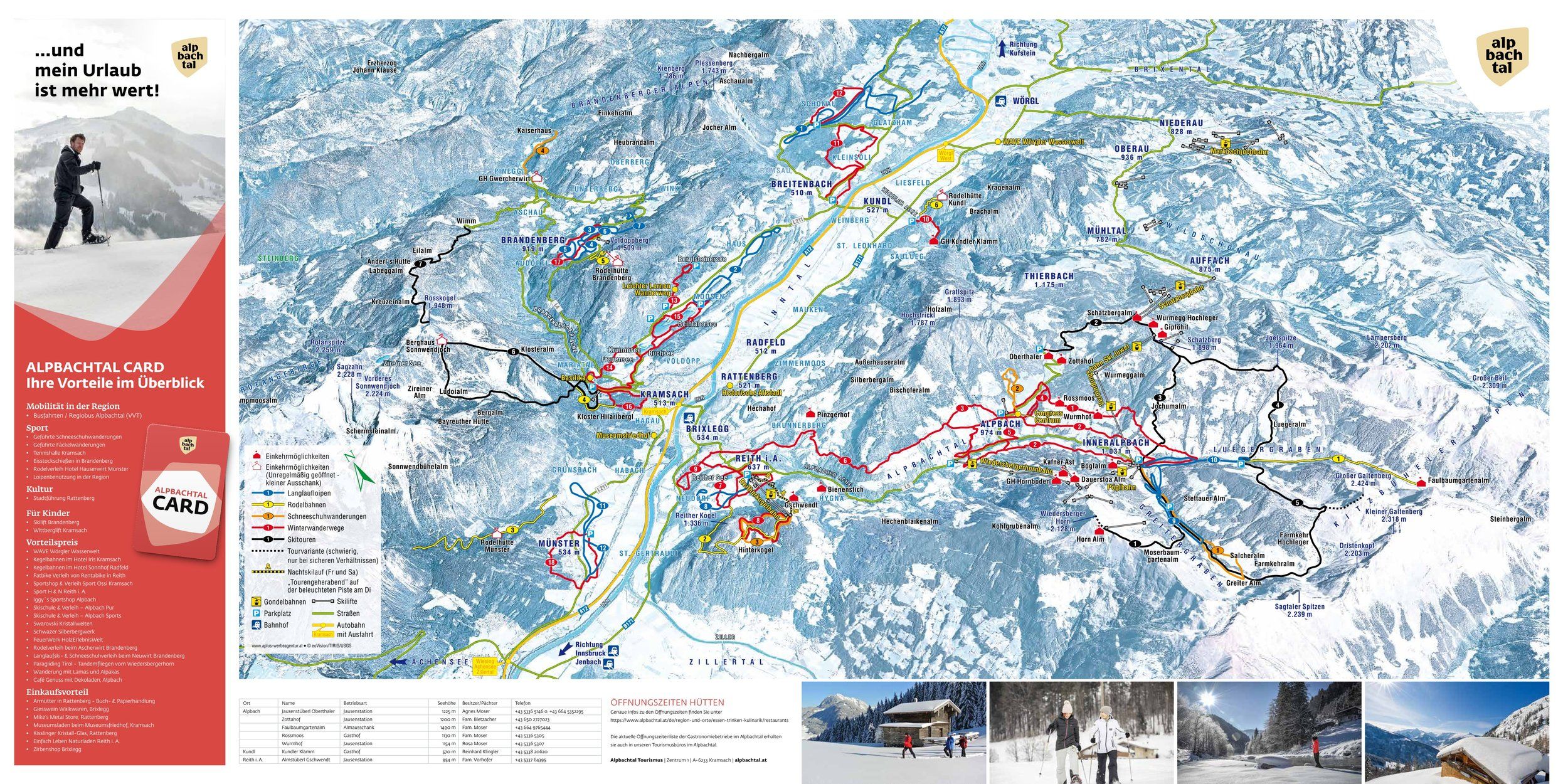 Weiteres Langlaufvergnügen bietet das Alpbachtal-Seenland auf rund 70 Loipenkilometern. Insgesamt 14 gepflegte Loipen führen durch die zauberhafte Landschaft der Kitzbüheler Alpen, meist durch den Talboden, über Wiesen und Felder, entlang von Bächen und über kleine Steigungen. Leichte Loipen für Anfänger befinden sich am Taleingang bei Reith und Breitenbach, aber auch anspruchsvollere Loipen finden sich entlang des Tales. Wer sich das Langlaufgebiet lieber zeigen lassen und dabei etwas über die Natur und die Region erfahren möchte, für den bieten sich die geführten Langlauftouren ab Schönau an.