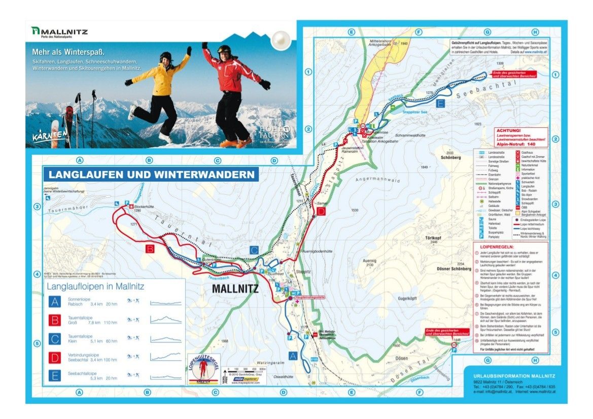 Besonders reizvoll sind die beiden Höhenloipen und die Mölltaler Gletscherloipe, die dank ihrer Höhenlage auf rund 2.000 m auch noch sehr gut befahrbar sind, wenn im Tal bereits die Schneeschmelze eingesetzt hat. Die Loipen in Mallnitz führen Sie auch in die wunderschönen Nationalparktäler Seebachtal und Tauerntal. Nahe des Ortszentrums gibt es zudem einen Laser-Biathlon-Parcours.